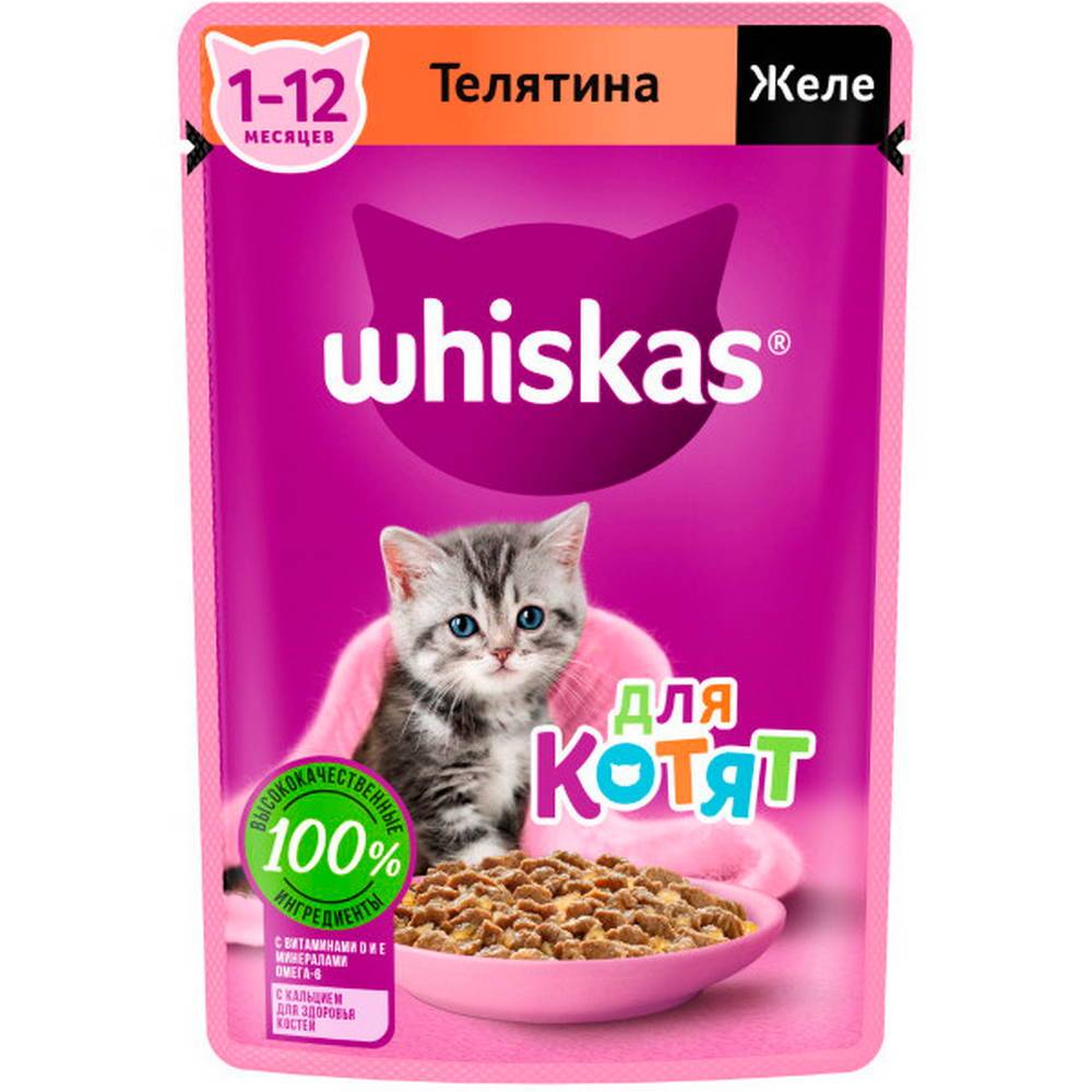 Рацион Whiskas для котят "Желе с телятиной" — это сбалансированный рацион для здорового роста вашего малыша. Отборные мясные кусочки с телятиной в аппетитном желе придутся по вкусу вашему котенку. Все для замурррчательной жизни!