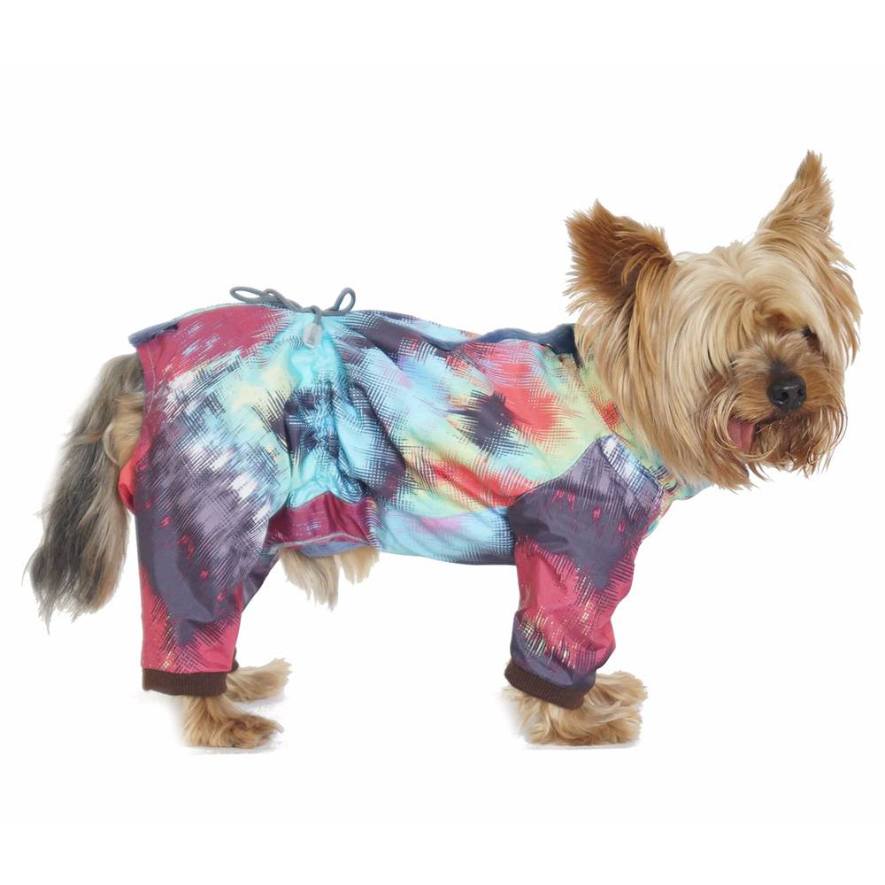 Комбинезон для собак Комбинезон предназначен для прогулок на улице. Комбинезон изготовлен из ткани, защищающей от ветра и осадков, подойдет для весеннего и осеннего сезона. Комбинезон застегивается на кнопки и фиксируется на спине шнурком-кулиской, благодаря чему его легко надевать и снимать. Ворот, низ рукавов и брючин оснащены внутренними резинками, которые мягко обхватывают шею и лапки, не позволяя просачиваться холодному воздуху.