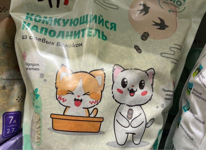 Биоразлагаемый комкующийся наполнитель из соевых волокон быстро впитывает жидкость и нейтрализует неприятный запах.