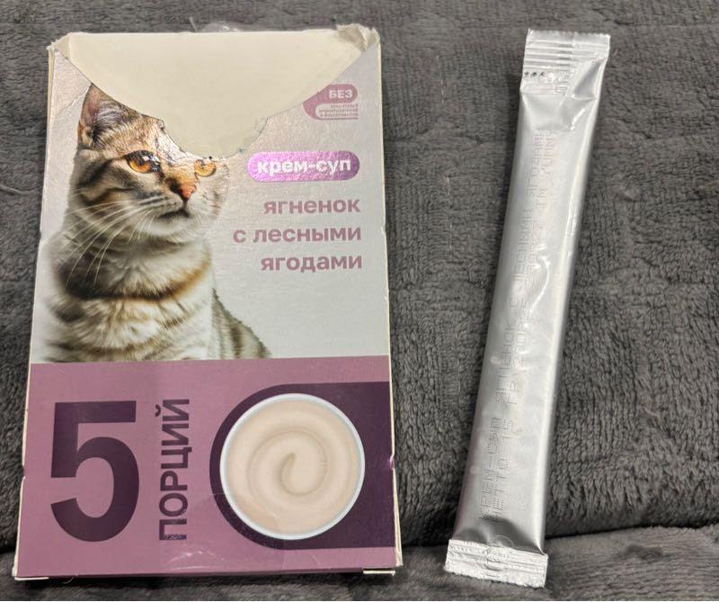 Купили нашему котику поесть после кастрации! Кот съел с удовольствием сразу два пакетика. Он очень довольный, ему очень-очень понравился. В пачке 5 пакетиков, цена приемлемая. Состав отличный.