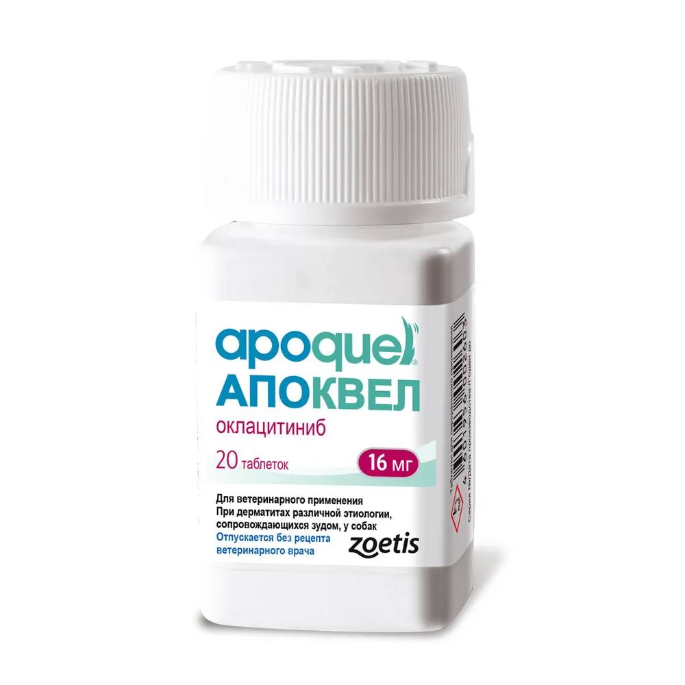 Апоквел выпускают в трех дозировках, содержащих в 1 таблетке в качестве действующего вещества оклацитиниба малеат (в пересчете на оклацитиниб) 3,6 мг; 5,4 мг и 16 мг соответственно, а также вспомогательные вещества: микрокристаллическую целлюлозу, лактозы моногидрат, карбоксиметилкрахмал натрия, магния стеарат, плёнкообразователь «Opadry II White» и воду очищенную.