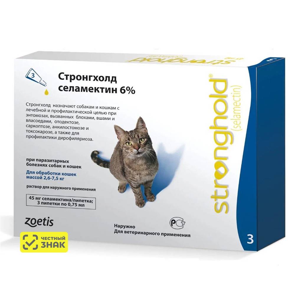 Назначают стронгхолд кошкам и собакам для уничтожения блох (Ctenocefalides spp) и профилактики повторного заражения в течение 30 дней после применения. В составе комплексной терапии для лечения блошиного аллергического дерматита. Для лечения и профилактики саркоптоза (S. scabiei) и отодектоза (O. cynotis). Для профилактики дирофиляриоза (Dirofilaria immitis). Для дегельмитизации при анкилостомозе (Ancylostoma tubaeforme) и токсокарозе (Toxocara cati, Toxocara canis).