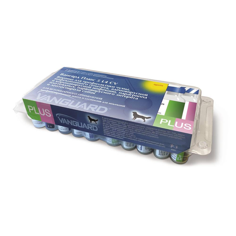 Вакцина предназначена для профилактики чумы, инфекционного гепатита, аденовирусной и коронавирусной инфекции, парагриппа плотоядных, парвовирусного энтерита и лептоспироза собак.