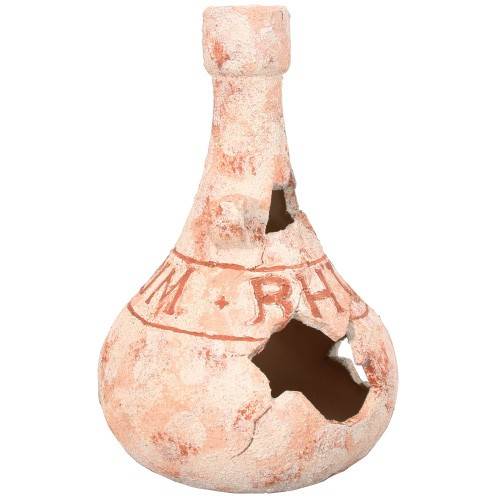 - Аквариумный декор выполнен в виде бутыли для вина.