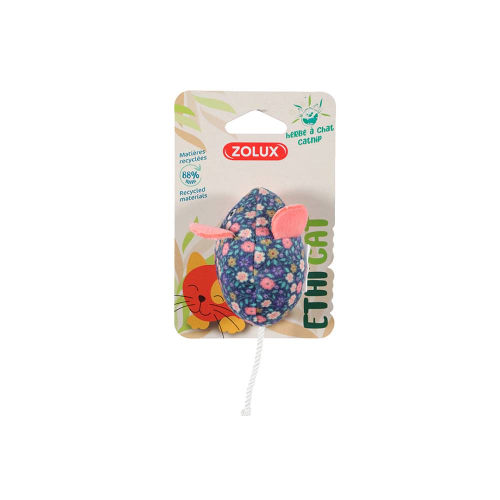 Игрушка изготовлена из мягкой плюшевой ткани, украшенной мотивом цветов маргариток, и пропитан кошачьей мятой, которая положительно стимулирует чувства животного, побуждая его к свершению игровых подвигов.