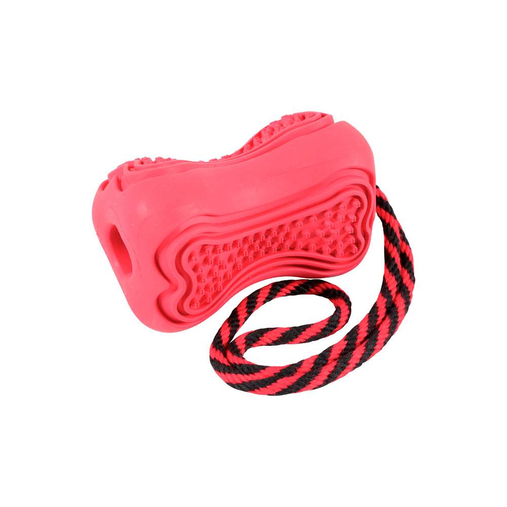 Zolux Игрушка-кормушка с веревкой резиновая Кость Титан, 11,5 см, красная