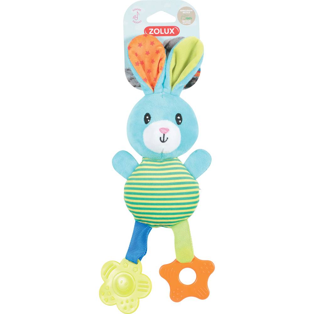 Приятная игрушка сделана из удивительно мягкого плюша и снабжена пластиковыми жевательными элементами на ножках. Кролик наполнен 100% переработанным материалом, и его можно мыть. Плюшевая игрушка значительно снижает риск стресса и облегчает адаптацию к новой среде маленького питомца.