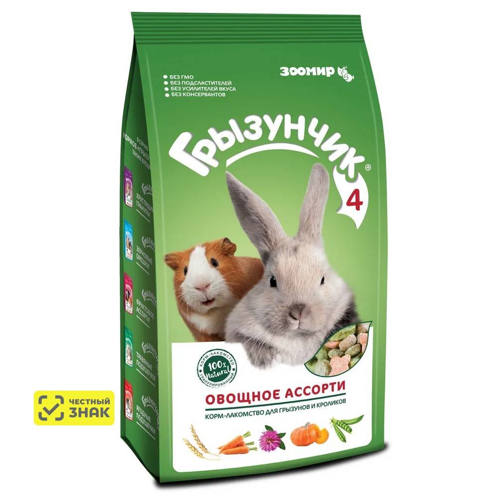 КомментарийПосле фруктовых вкусняшек Грызунчик я решила угостить своего Зайку овощными вкусняшками. Корм пошёл на ура!Михаил