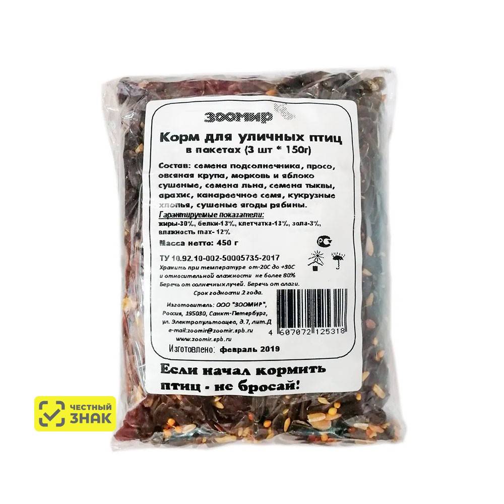 Корм для уличных птиц в пакетах, 3 шт х 150 г.