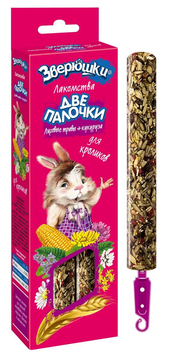 Потрясающие лакомства для кроликов с луговыми травами и кукурузой. «ДВЕ ПАЛОЧКИ» упакованы в дополнительную упаковку, которая дольше и надежнее сохраняет лакомства и защищает их от проникновения всяких вредителей. Кроме того, они имеют удобное крепление, которое позволяет легко, быстро и надежно закрепить палочку на прутьях клетки. На них гораздо больше вкусностей благодаря тонкой деревянной палочке.