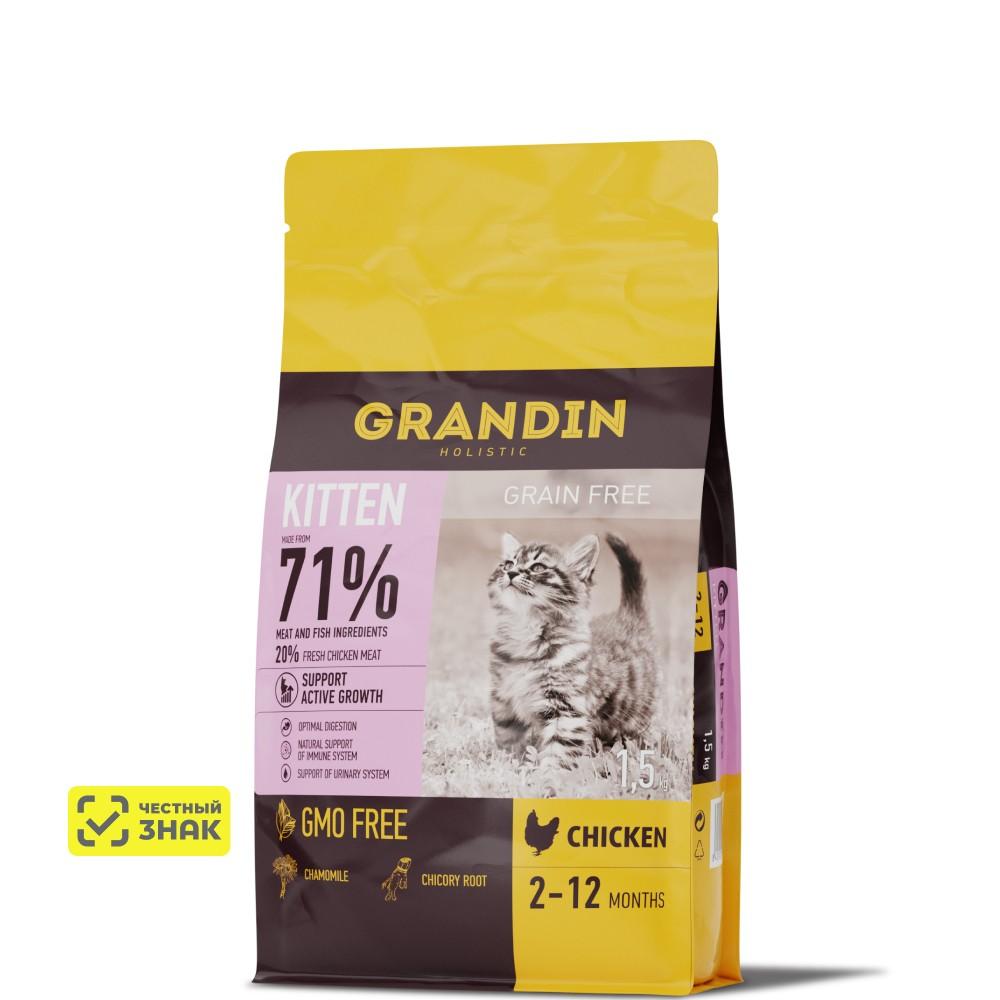 51 979 ₽Grandin Kitten Сухой корм для котят, беременных и кормящих кошек, с курицей, 1,5 кг400 г1,5 кг