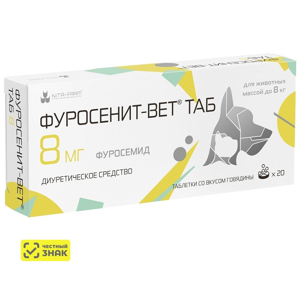 ждет оценки397 ₽Nita-farm Фуросенит-вет Таб Диуретическое средство для кошек и собак 8 мг, 20 таблеток