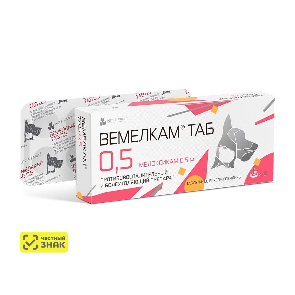 5583 ₽Nita-farm Вемелкам Таб Нестероидный противовоспалительный препарат для кошек и собак 0,5 мг, 10 таблеток