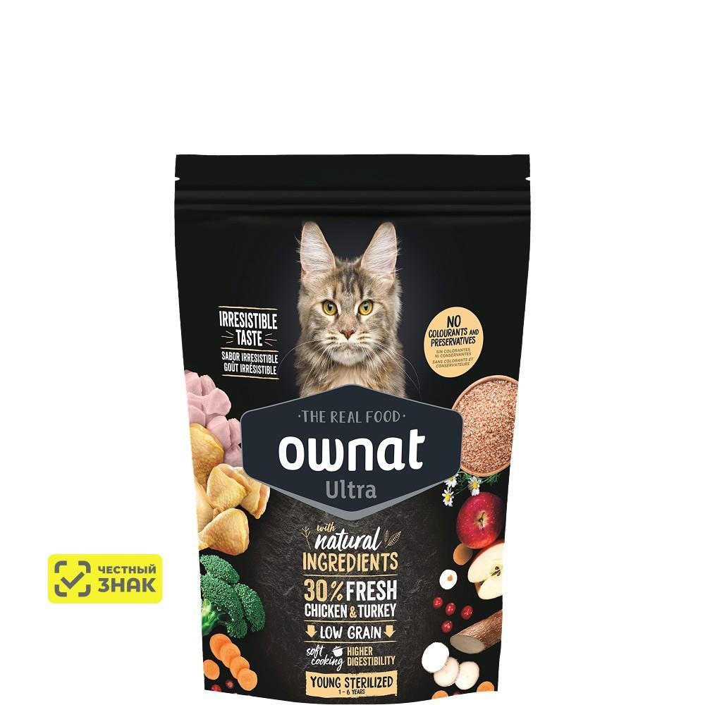 5679 ₽Ownat Ultra Mature Sterilized Сухой корм для стерилизованных кошек старше 7 лет, с курицей и индейкой, 400 гр.400 г1,5 кг