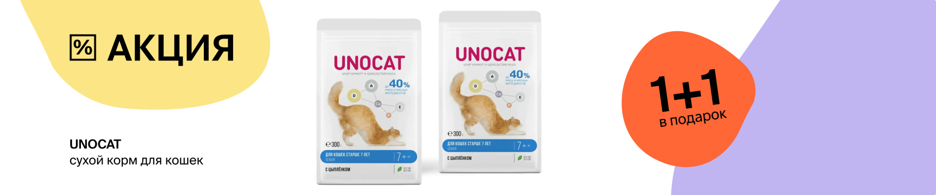 UnoCat: 1+1 сухой корм для кошек в подарок